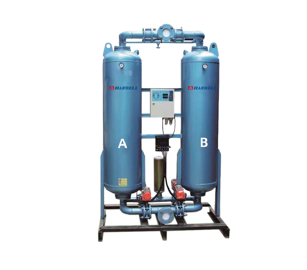 吸附式干燥机的工作原理很简单:潮湿的空气流过干燥剂干燥。一旦干燥剂材料被水吸收,它就会再生以恢复其干燥能力。吸附干燥器通常用两个干燥容器构建,第一个容器干燥进入的压缩空气,而第二个容器负责再生。